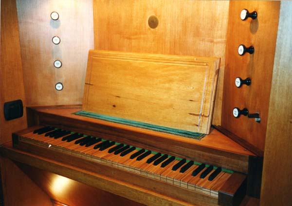 Caratteristiche Organo a trasmissione elettromeccanica. Consolle a finestra. Tastiera ricoperta in ulivo.